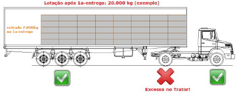 Se retirada a carga pela traseira, e a lotação restante ficar encostada no frontal da carreta, com valores entre 26.000 kg e 10.000 kg fatalmente causará excesso no trator.