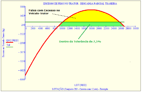 Para esse exemplo (Conjunto 2S3 com carreta de 12,4 metros de comprimento) a faixa de remoção de carga na traseira que causará excesso no cavalo está no gráfico abaixo.